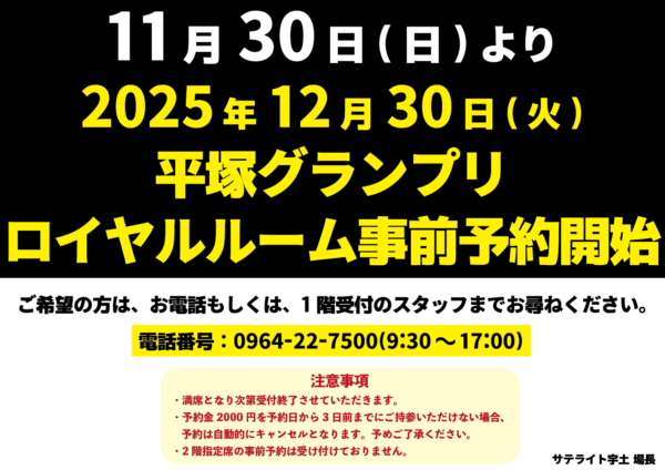 【11/30より予約受付開始】12/30競輪グランプリ ロイヤルルーム事前予約