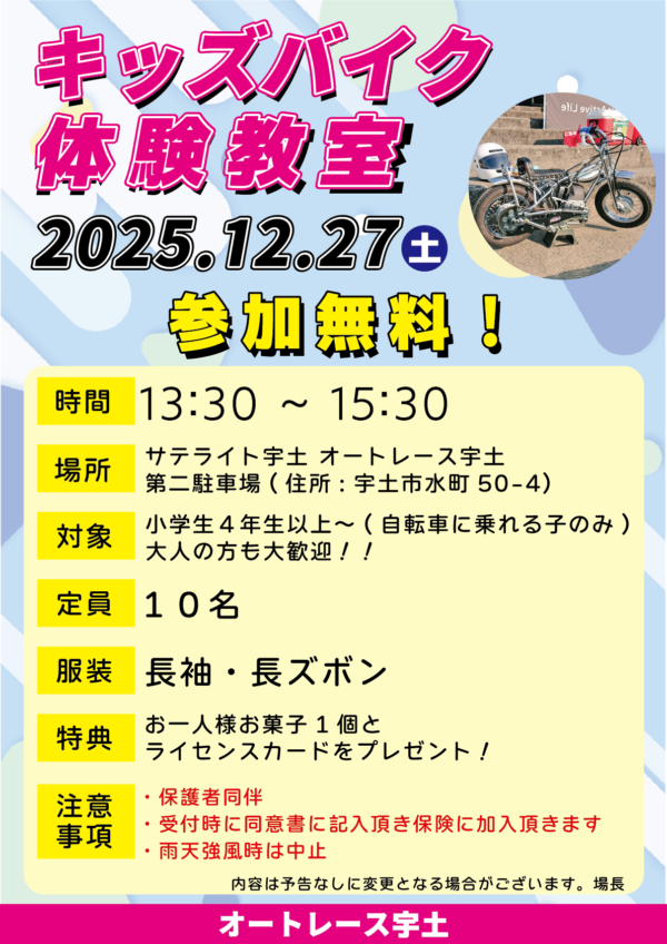 12月27日にキッズバイク体験教室を開催いたします✨