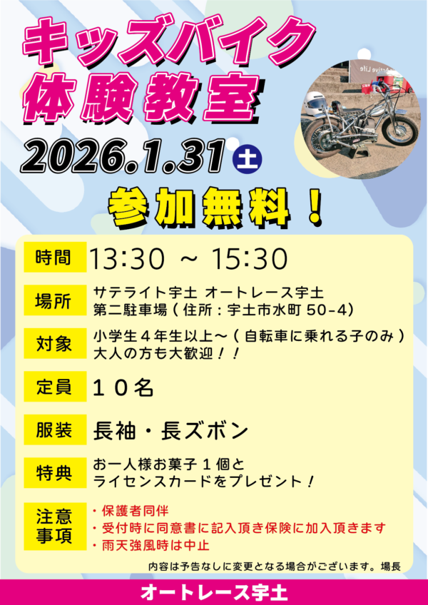 1月31日にキッズバイク体験教室を開催いたします✨