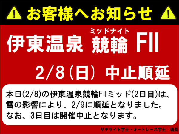 【2/8】伊東温泉競輪ミッドナイト中止・順延について