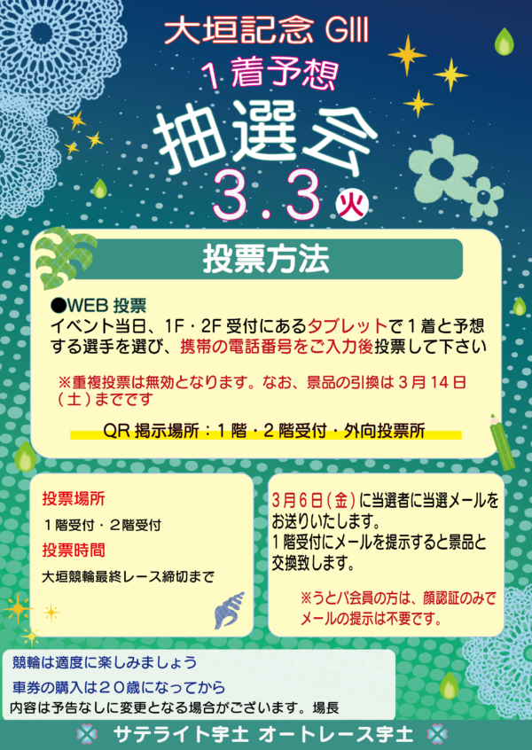 【3/3(火)】1着予想抽選会【大垣記念GⅢ】